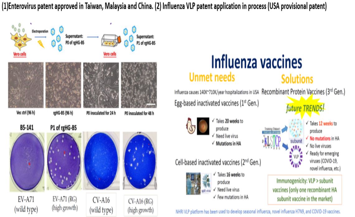 次世代腸病毒疫苗利用高成長腸病毒71型病毒株,顯著提高疫苗生產效率,且對於流行中的B5及C4基因型病毒有良好交叉中和抗體反應,提升了疫苗的生產效率及有效性。